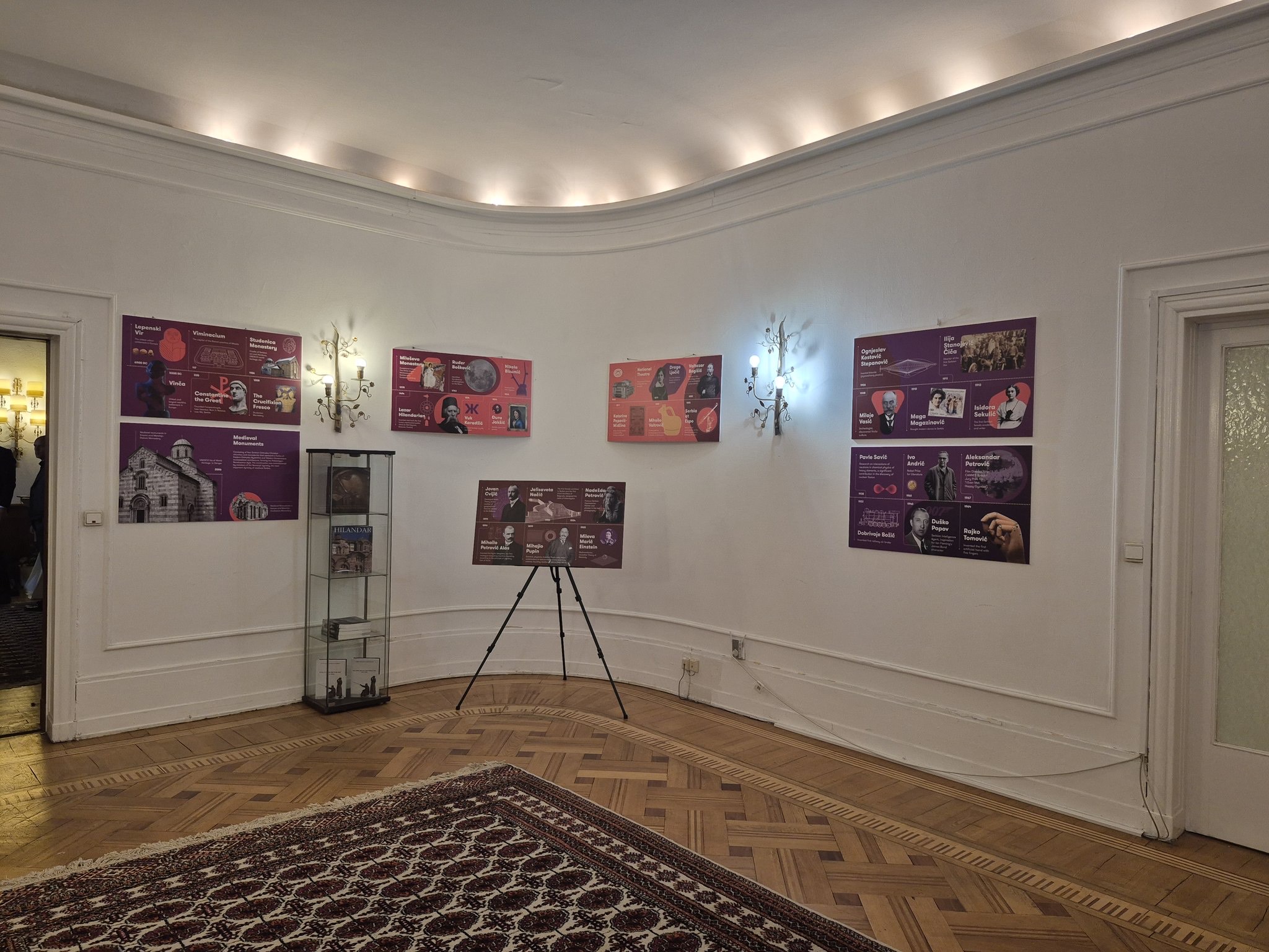 U Ambasadi je ovom prilikom postavljena izložba „Timeline of Serbian Creativity“ koja kroz znamenite ličnosti iz sveta nauke, kulture i sporta predstavlja najznačajnija dostignuća i doprinos Srbije svetskoj kulturnoj i naučnoj baštini. Takođe, gosti su imali priliku da pogledaju i virtuelnu izložbu „Heritage of Serbia: A Virtual Journey“, koja kroz primenu modernih tehnologija pruža uvid u istoriju, umetnost i kulturu Srbije.